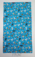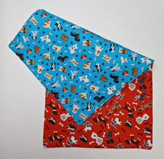 Multiple dogs on red and blue background.
