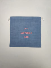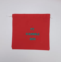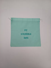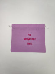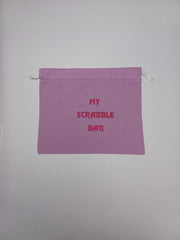 Wording with "My Scrabble Bag." An assortment of colors of bags and wording. Good for the scrabble game to put tiles in.