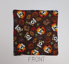 Dog, pumpkin, turkey, corn, acorn, hat, leaves and fireworks.